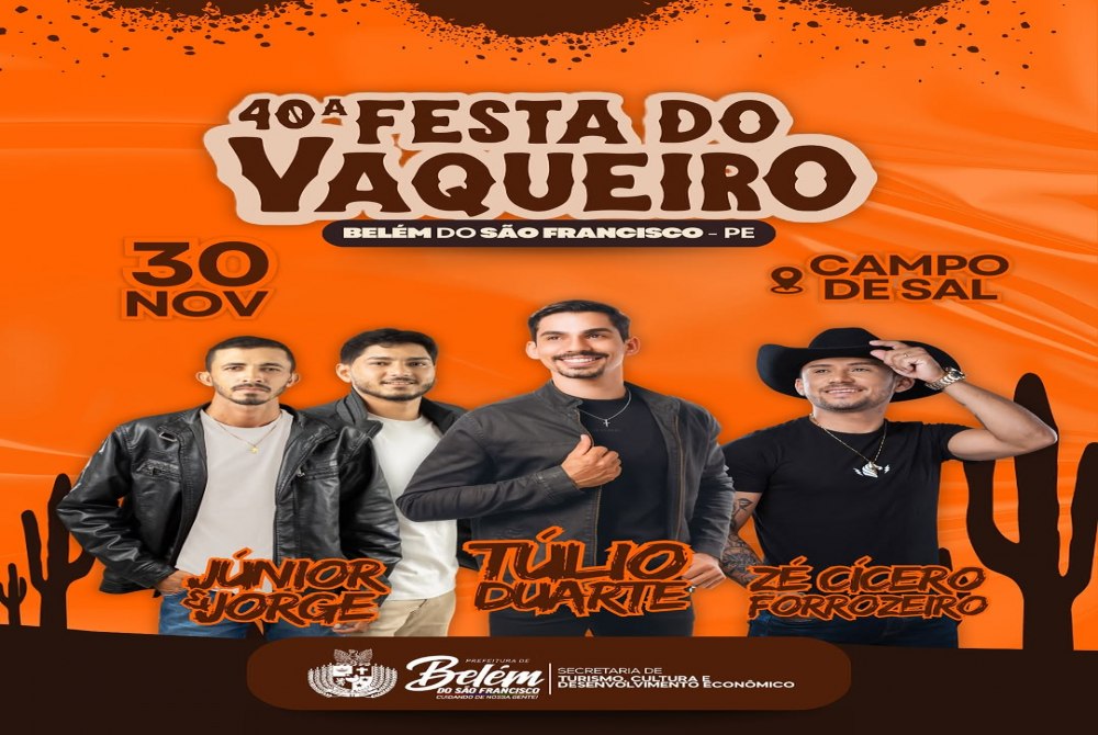 A festa do vaqueiro de Belém do São Francisco rola dia 30 de novembro no campo de sal! Vem curtir tradição, música e muita animação!