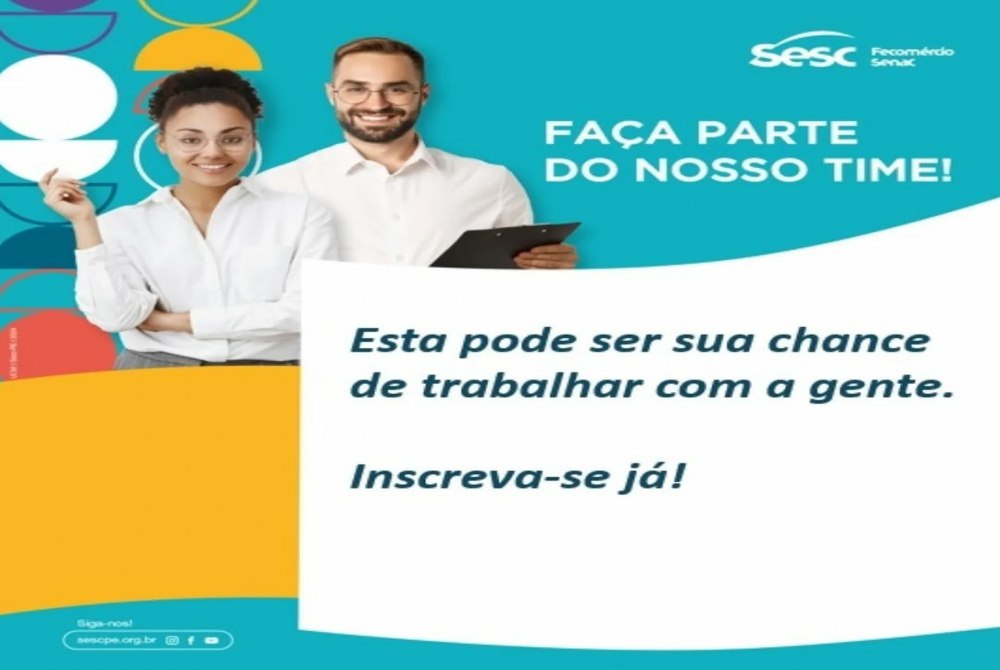 Confira os cargos e cidades no carrossel e saiba como participar pelo site sescpe.org.br (menu Sobre o Sesc > Trabalhe Conosco).