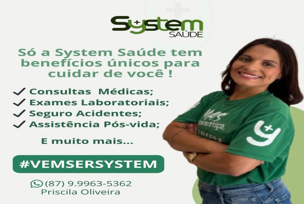 Cuidar da saúde é essencial e com o System Saúde, é simples e acessível! Fale comigo: (87) 99963-5362
