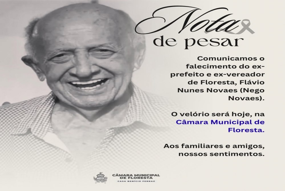 Comunicamos o falecimento do ex-prefeito e ex-vereador de Floresta, Flávio Nunes Novaes (Nego Novaes).