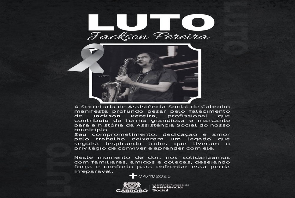 A Secretaria de Assistência Social de Cabrobó manifesta profundo pesar pelo falecimento de Jackson Pereira, profissional que contribuiu de forma grandiosa e marcante para a história da Assistência Social do nosso município.
