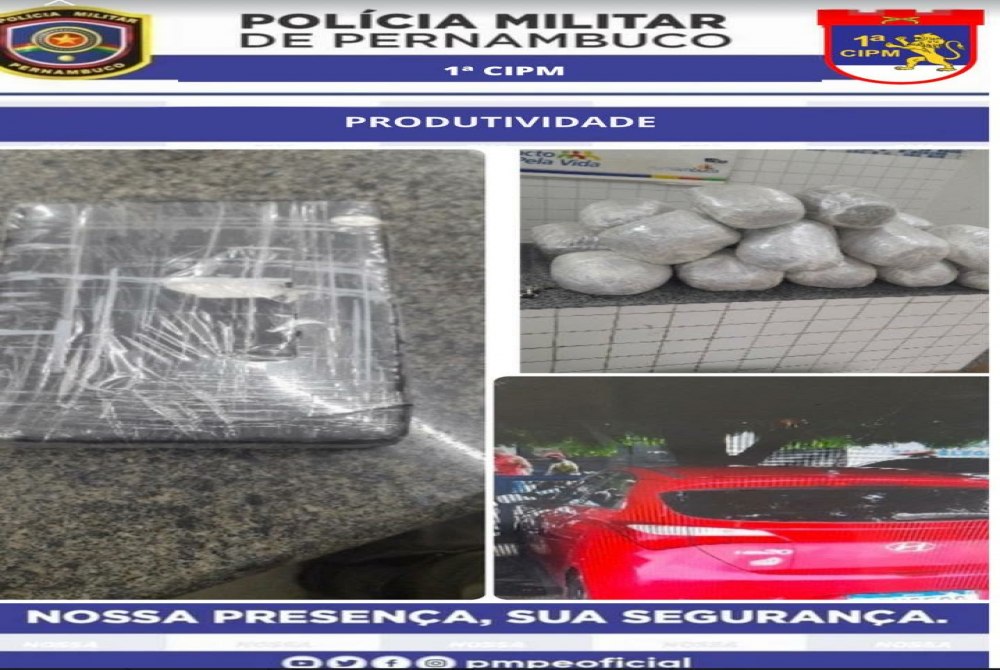 Policiais militares da 1ª CIPM realizavam patrulhamento com abordagens, quando avistaram um carro em atitudes suspeita, e na abordagem foram encontrados uma grande quantidade de maconha, totalizando 21120 gramas, como também um tablete de cocaína pesando 1100 gramas.