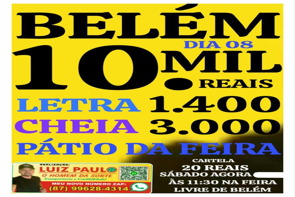 Alô, Belém do São Francisco sábado dia 08 tem bingo de10 mil no Patio da Feira.